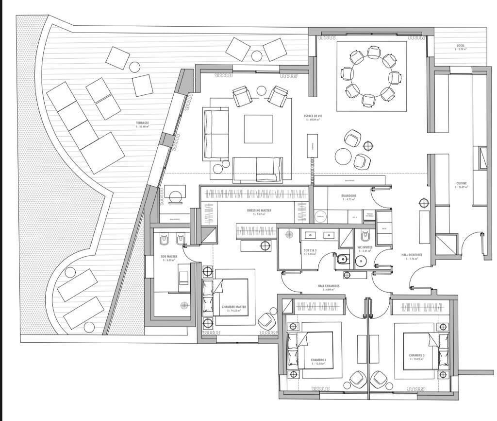 - Grand salon / Salle à manger ouvrant sur une large terrasse de 92 m²,