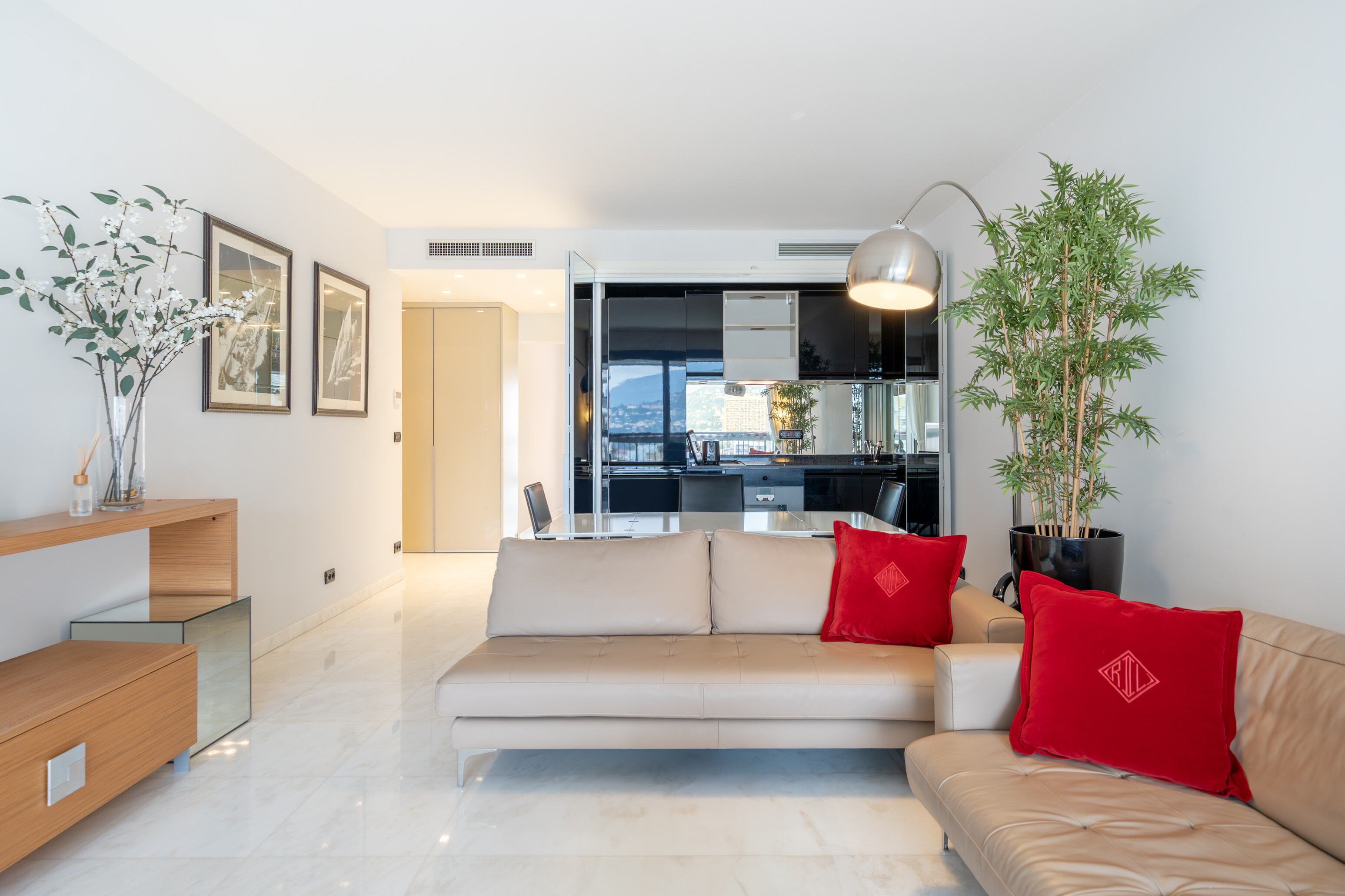 - Soggiorno con cucina a vista attrezzata, con accesso a un’ampia terrazza
