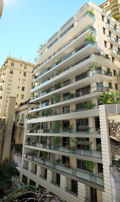 La Rousse/Saint Roman, un nuovo affascinante edificio di 12 piani in costruzione nell'ambito di un approccio eco-responsabile, con due ingressi, uno sul Boulevard d'Italie e l'altro sul Boulevard du Larvotto.